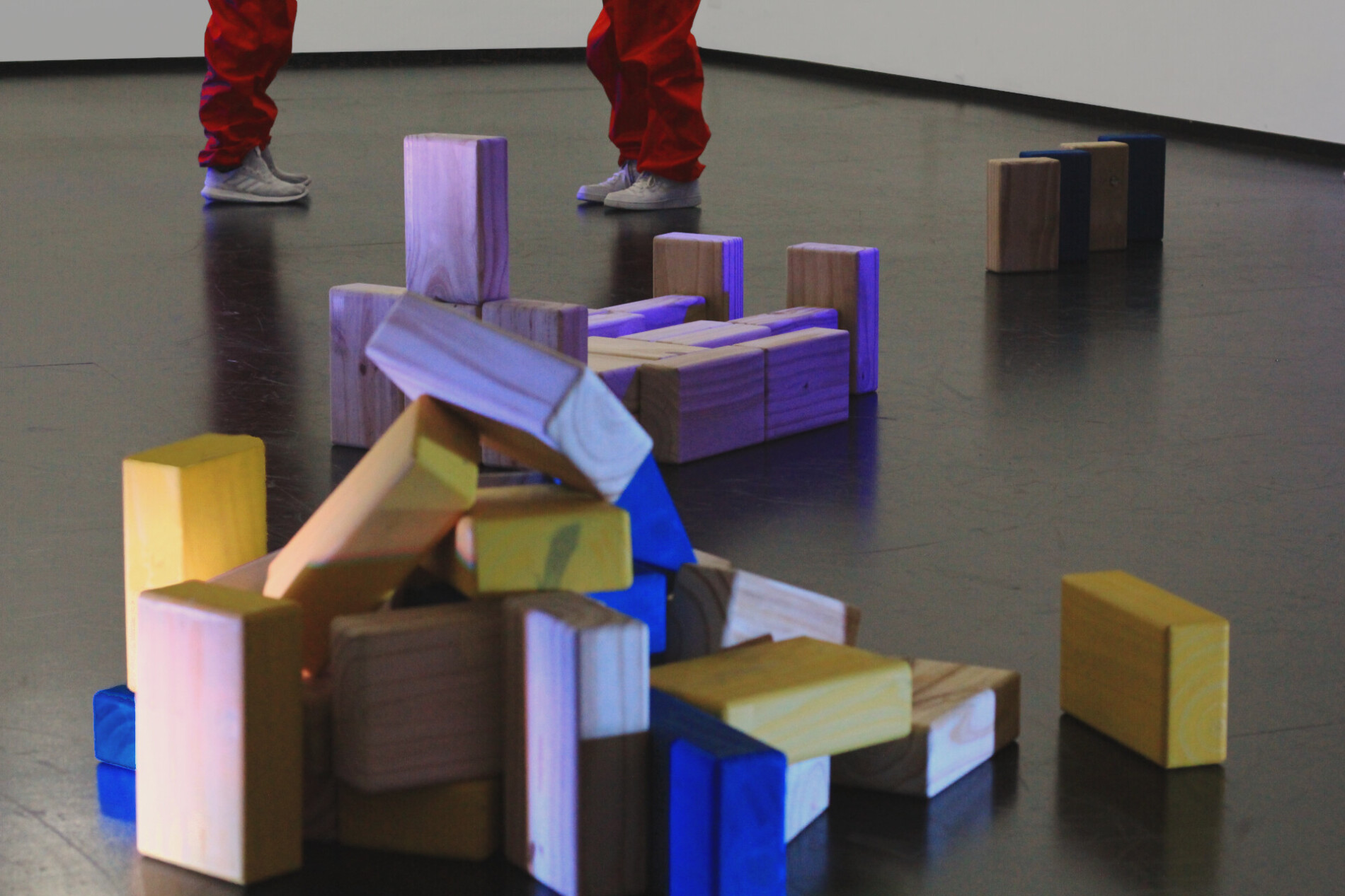 Todo comienza a suceder con la precisión de una maquinaria silenciosa. Los movimientos se repiten, se organizan, se reparten. Una rutina: tomar, cargar, trasladar, ubicar. Dos intérpretes trasladan ladrillos de un extremo al otro, mientras las otras los reciben y acomodan en el espacio. Entre las cuatro, se construyen muros, estructuras, formas que no terminan de afirmarse. No hay palabras, ni indicaciones, solo acción. Una traslada, otra acomoda. Una y otra vez. El tiempo avanza y la lógica se sostiene. Hay ritmo. Hay precisión. Como si los cuerpos respondieran a una pauta no dicha, pero presente. ¿Qué construyen? ¿Para qué? ¿Lo saben?