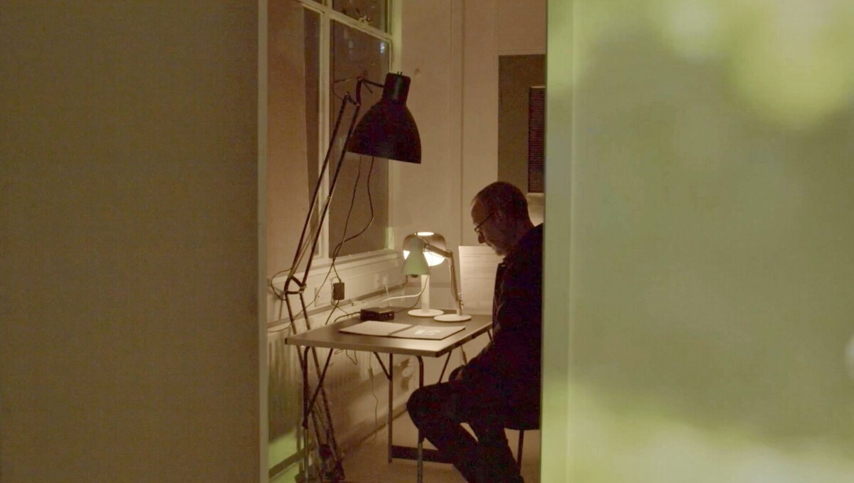 Film stills of viewer watching the book of films