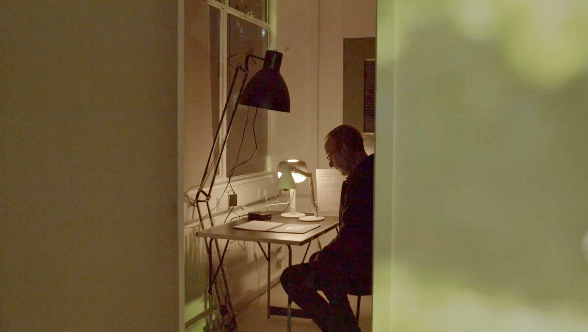 People watched the films with a sense of gravity– as if viewing a book of remembrance. Perhaps, this was because unlike a film festival where we watch with others, this work provides a near private viewing experience where you can take as much time as you need to watch the films.There is only one chair, and this is placed at the back of the gallery in a small separate room. The room resembles a special section of a library, an archive perhaps, whichinvites a quiet quality of concentration. In the pictures you can see that the reader is visible to those in the main gallery. An awareness of being watched, I imagine mightalso intensify the experience of watching.