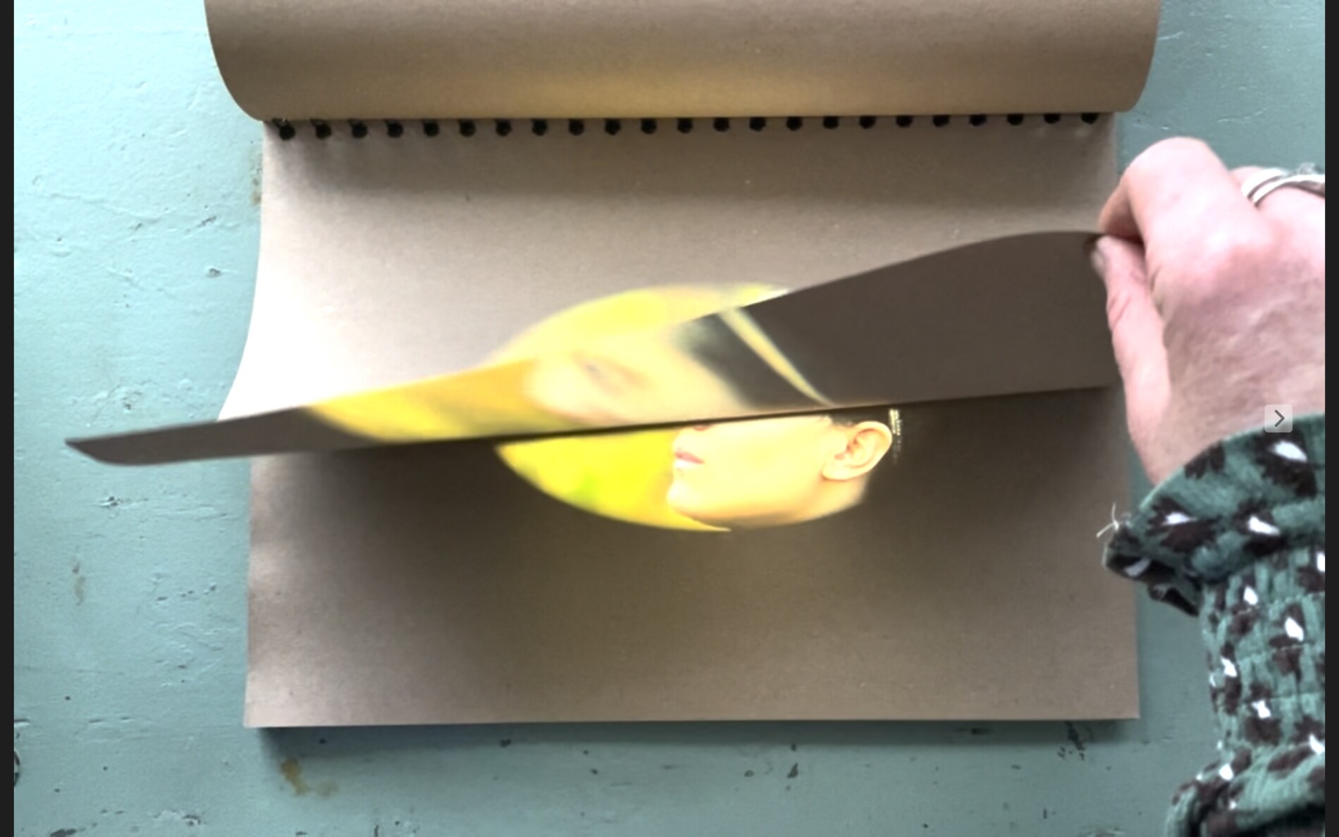 The film sits on the paper and the viewer/reader is invited to watch a film as if they are reading a book. The work offers a familiar yet strange combination of movement and stillness. Although as Seago and Sykes note both dance and film are “intrinsically dynamic.” (Seago and Sykes 2019, p.3), books are still. Our eyes move as we read but the words stay on the page so when the image starts to move in this artwork, it’s a bit like something magic appearing.
